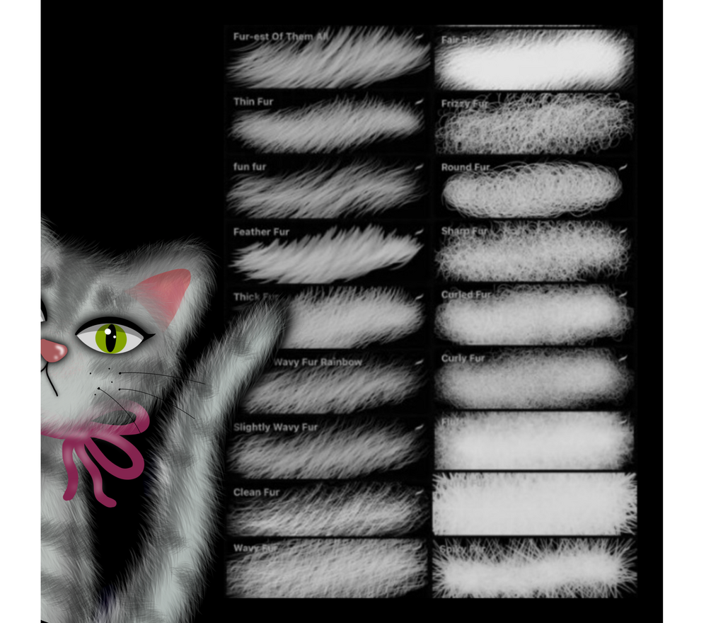 This set includes 18 high-quality fur brushes for Procreate. they will come in a .brushset format.