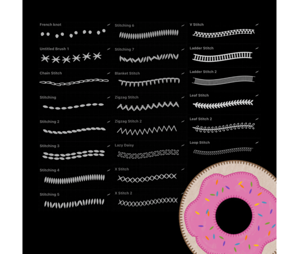 22 stitching procreate brushes + more